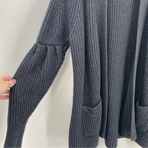 Anthropologie Knitted & Knotted Charcoal Gray Ribbed Knit Open Cardigan Sweater