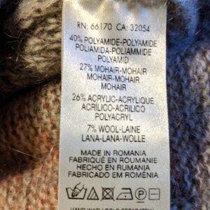 Made of 40% polyamide, 27% mohair, 26% acrylic, and 7% wool