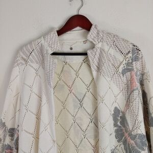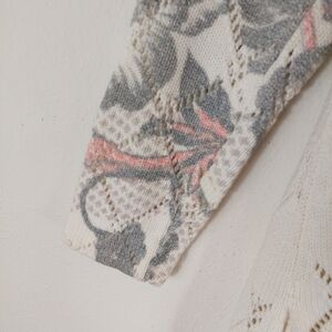 Anthropologie Knitted & Knotted Cream Floral Open Front Cardigan Sweater Size XS.