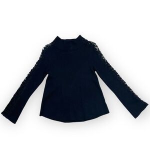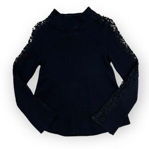 Anthropologie Knitted & Knotted Crochet Trim Mock Neck Sweater