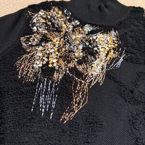 Anthropologie Knitted & Knotted Fete Sweater Beaded Wool Blend Black XL OB541218
