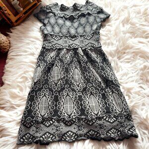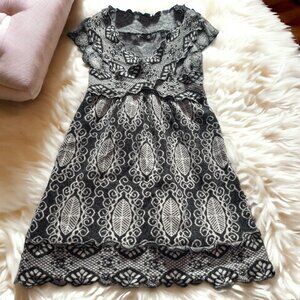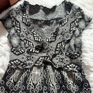 Knitted & Knotted's stretch intarsia knit pairs two cleverly matched patterns in a face-framing, waist defining silhouette. Beautiful condition. No flaws!