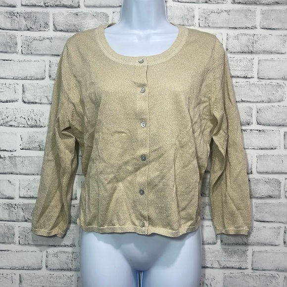 Anthropologie Knitted & Knotted Gold Lace Back Cardigan Large
