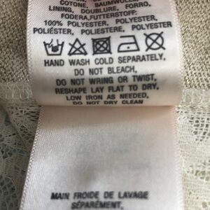 Gold shimmer, cream lace back with gold detail through out, button up, fringed hem on lace, extra button and thread,may vary due to lighting, EUC, Size: L