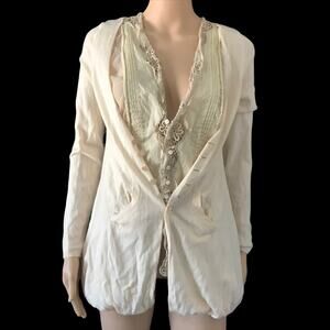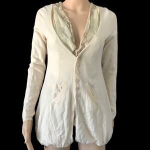 Anthropologie Knitted + Knotted Lace Tulle Pale Noon Button Cardigan Sweater M