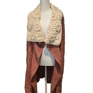 Anthropologie Knitted & Knotted Lilitz boho Long Cardigan Crochet Collar, Size M