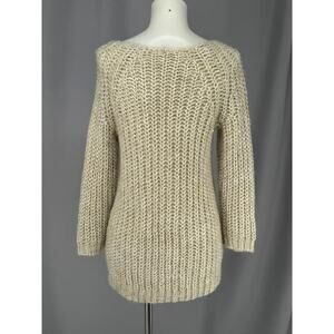 Knitted & Knotted Sweater Womens Small Beige Chunky Sequin Pullover