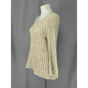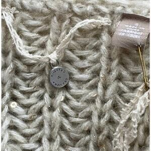 Anthropologie Knitted Knotted Sweater Womens Small Oatmeal Open Knit Sequin