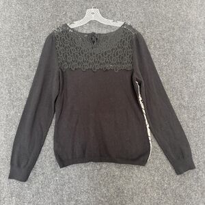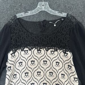Anthropologie Knitted & Knotted Sweater Women's XL Black Cream Jacquard