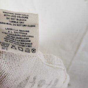 In good pre-owned condition, there are a few minor flaws: some internal staining at hook holes, some faint spots in various places, and one woven line with a pinkish hue from the original manufacturing, all as shown. No brand tag, but RN number reflects brand.