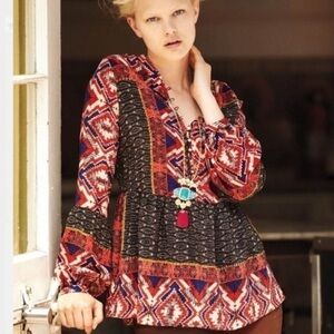Beautiful Anthropologie Konrad and Joseph red and black boho print top. EUC. Can be dressed up or down.