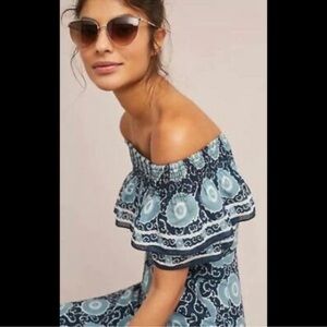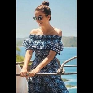 Anthropologie Kopal Blue White Jumpsuit Size Small