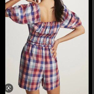 Anthropologie Kopal Brea Plaid Cotton Romper Size Small