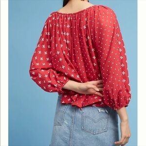 Anthropologie Kopal Puff Sleeve Peasant Boho Flowy Crop Shirt