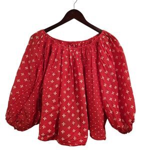 🅢🅐🅛🅔 Anthropologie Kopal Red Top Luma Peasant Blouse Medium