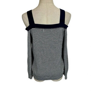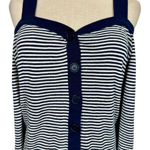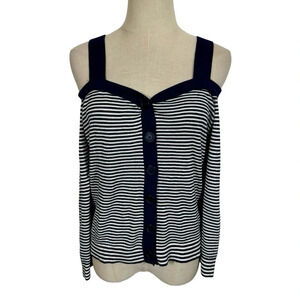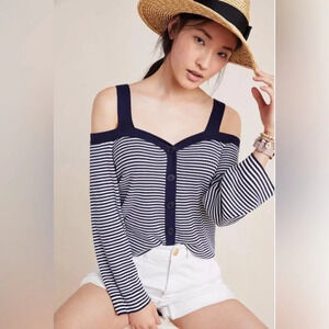 Anthropologie Krissy Striped Cold Shoulder Cardigan Navy