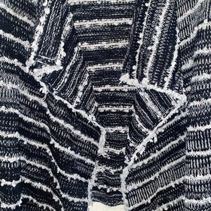 Beautiful Anthropologie la fee VERTE black white striped cardigan with small knitted balls throughout thick waterfall cardigan open sweater fringe hanging and small knitted balls