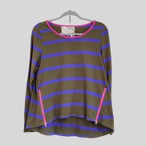 Anthropologie LILI'S CLOSET Stripe Zip Tee Shirt Top Blouse Sz M