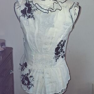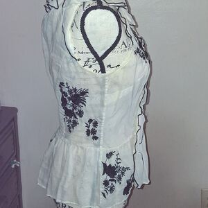 Anthropologie LITHE Cream Sleeveless Ruffled Peplum Blouse