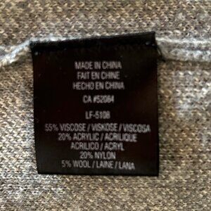 This unique and stylish cardigan from La Fee Verte (sold at Anthropologie) is a great layering piece. The open-front sweater features a geometric gray and cream zigzag and striped pattern. It has a relaxed, draped fit with short kimono sleeves, perfect for transitioning between seasons. Made from a soft and comfortable blend of viscose, acrylic, nylon, and wool.