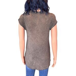 Anthropologie Labiz Washed Gray Brown Open Shoulder Pocket Tee Size Small NEW