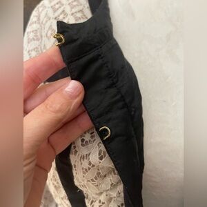 Trimmed in stunning black wool. Ruffle front. Hook and eye closure's. Two front open pockets. Gorgeous!!!