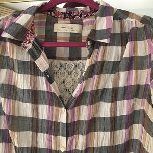 Detailed material • perfect fall look • roll up button sleeves • lace detailing on back is amazing! • worn twice, great condition • Isabella Sinclair