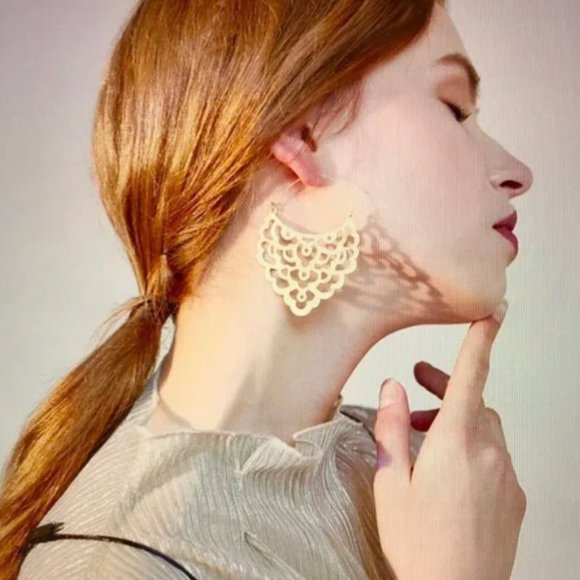 Anthropologie Lace Gold Hoop Earrings