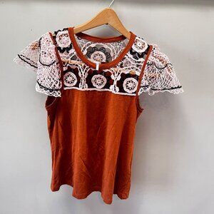 Anthropologie Lace-Trimmed Rust Orange Top XS