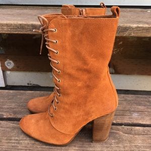 I bought these Anthro brand 67 (Sixty Seven) Laced Up boots in size Euro 36 late last year. In EUC/Like New condition; I only wore them less than an hour. I haven't worn them since because they are slightly too big on me and the heels are a little too high for my comfort. Otherwise they are very pretty!
