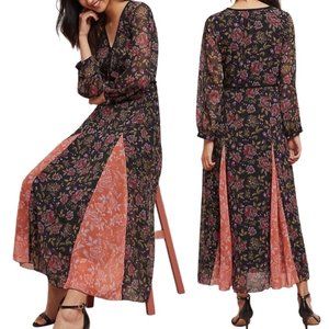 Anthropologie Laia Ines Floral Print Contrast Maxi Dress in Black Motif Size S