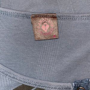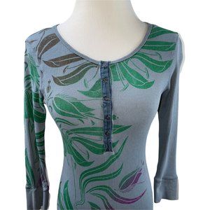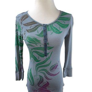 Anthropologie Language Blue Print Henley Long Cotton 3/4 Sleeve Knit Top T-shirt