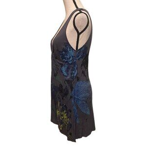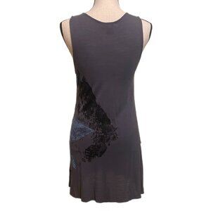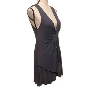 Anthropologie Language Sleeveless Gray Plunging V-Neck Patterned Tunic Size S