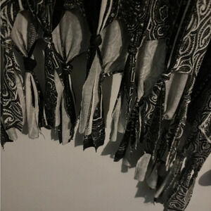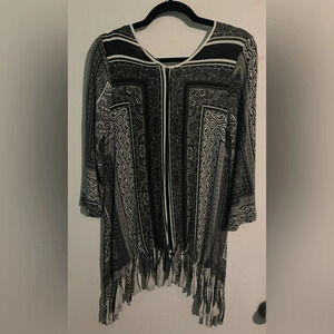 EUC from SF/PH home. Short sleeve, V-neck, fringed, shark-bite hemline.