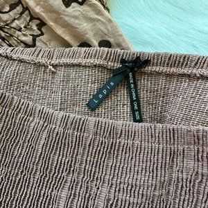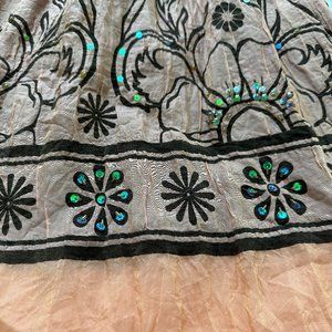 This is a beautiful convertible Dress Skirt (can be maxi skirt OR strapless dress) from Lapis/Anthropologie. A-Line, silky crinkled fabric, lined, quality embroidery and beading craftsmanship. As Skirt: Wide smocked elastic waist. / As Dress: Wide smocked elastic strapless top.