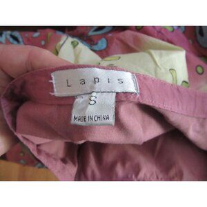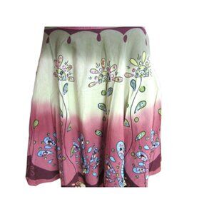 Adorable swing style skirt in red, green, blue etc. Flowing skirt that falls to the knee. The skirt is lined. Embroidery design with beads found here and there on the skirt. I did note a few beads missing but very hard to actually notice. The skirt is cotton in size small.