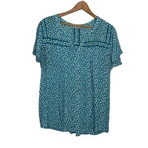 Anthropologie Large Daniel Rainn Blue White Lace Trim Flutter Sleeve Blouse Top