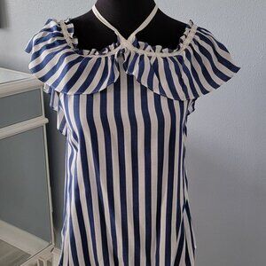 ❤️ Anthropologie Larke Blue white Stripe Emilie Off the shoulder Blouse Top