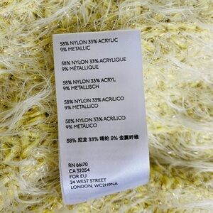 •58% nylon, 33% acrylic, 9% metallic