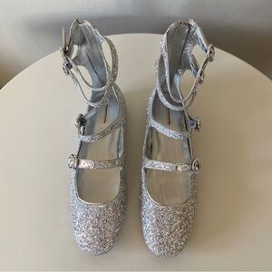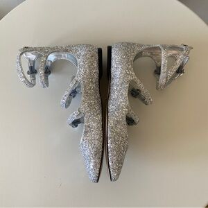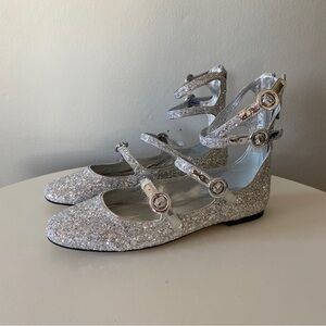 Anthropologie Larroude Alexa Flats 4 Buckle Ballet Silver Glitter Size 8 NWOT