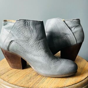 Grey Soft Tumbled Leather Ankle Booties with a Chunky Heel. Hidden Stretch Gore for a Comfortable Fit.