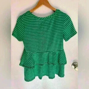 Anthropologie Laura Ruffle Top Striped Green and White Size XS