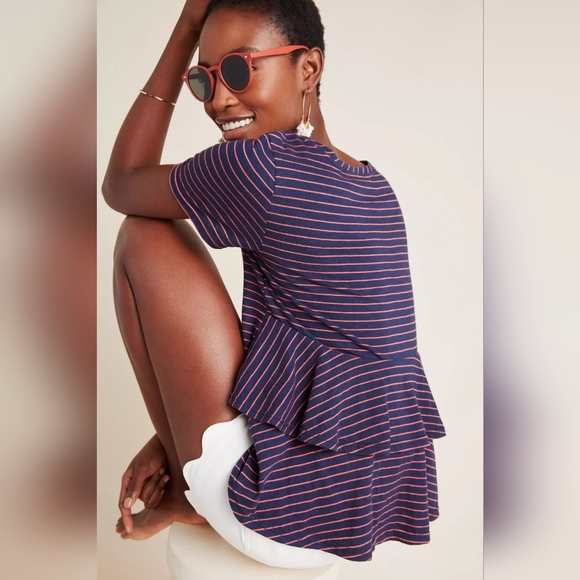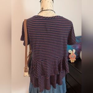 Anthropologie Indie Twee navy + red striped ruffle top