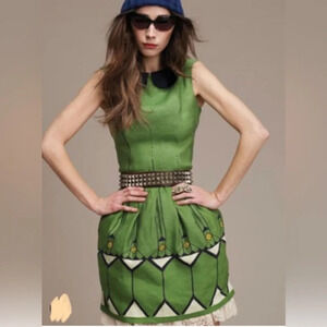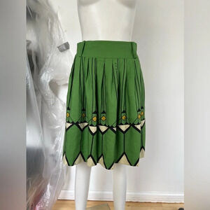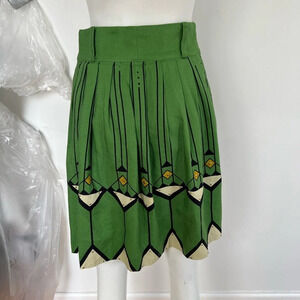 Anthropologie Lauren Moffatt 4 Preppy Boho Green Geometric Print Plaid Skirt