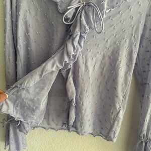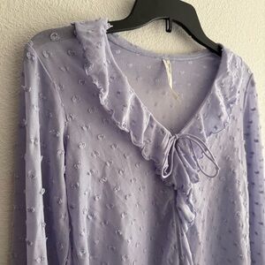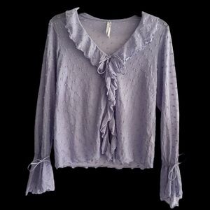 Anthropologie Lavender Bell Sleeve Ruffle Blouse Size XS Swiss Dot Fairy Boho
