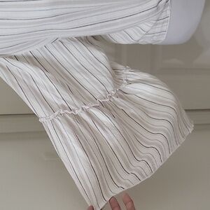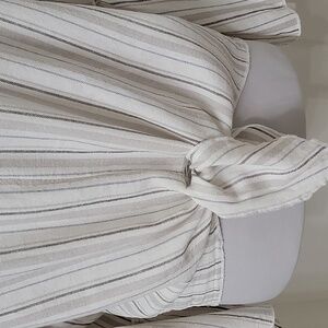 Anthropologie Lavender Field Size L Linen Blend Striped Bell Sleeve Tie Front