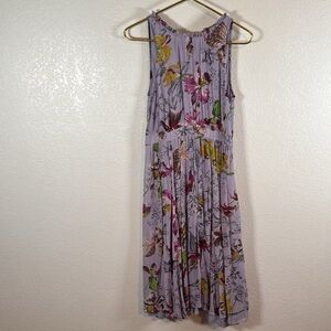 Anthropologie Lavender Floral Midi Dress Smock Back Waistband Size 8