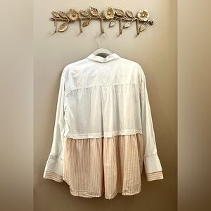 Elegant layered blouse from Anthropologie with stripes. Versatile and chic.