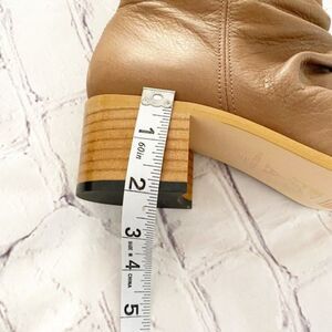 Anthropologie Leather Ankle Boots Camel Tan Block Heel Minimalist Modern 6.5