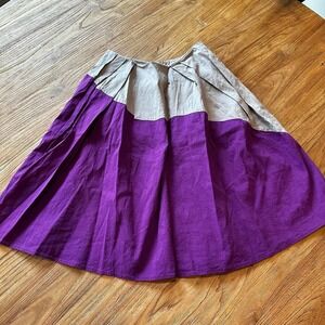 Anthropologie Left Of Center Diagonally Divided Women’s Two Toned Pleated Skirt Linen Blend